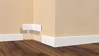 Résistantes et simples à poser. La fabrication au moyen d’un processus de fabrication de coextrusion fait des plinthes âme bois un produit unique. L’âme bois de haute qualité (HDF) à base de fibre de bois résineux, certifié FSC, est enrobée de polymère à haute performance. Ce poly mélange, sans chlore, à base de PP/TPE ne nuit pas à l’environnement et nous permet d’avoir, entre autre, la certification Greenguard. Toutes les plinthes âmes bois peuvent être posées avec nos systèmes d’outils (grugeoir ou cisaille). Pour le collage à haute résistance, nous vous conseillons notre pistolet de collage à chaud HKP220 avec l’utilisation de notre colle HKS 18/300.